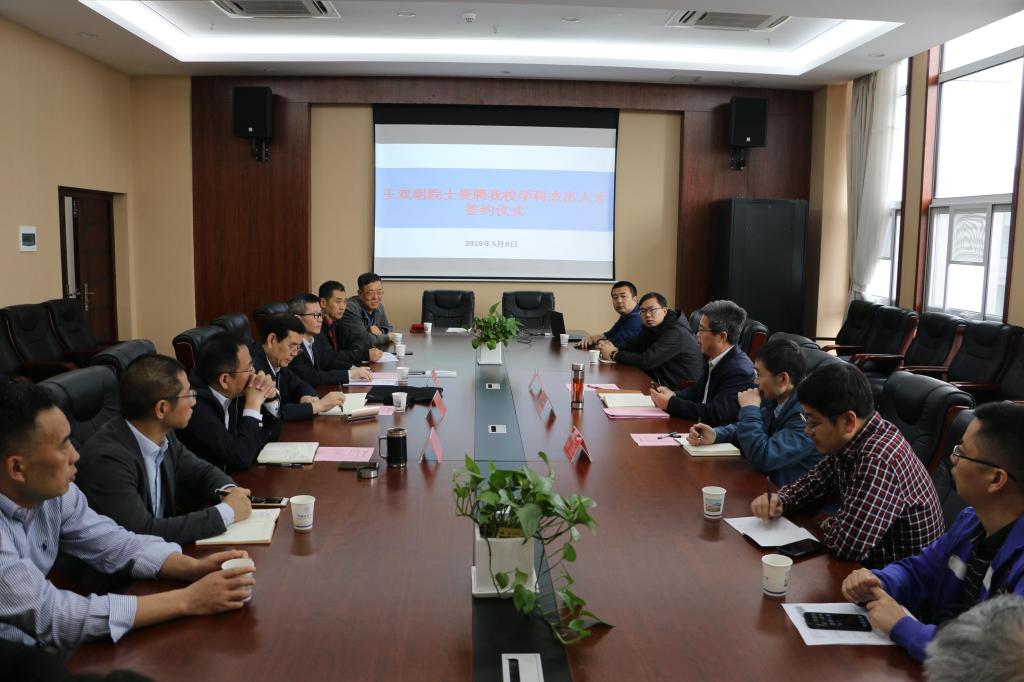 王华与王双明共同签署聘用协议。王双明感谢学校的充分信任和热情邀请,对学校各方面发展取得的显著成绩表示祝贺,并简要分享了自己的求学经历和工作体会。并表示要在科研平台建设、学科团队建设、服务地方经济发展等方面积极贡献自己的智慧,为推动学校“双一流”建设贡献力量。