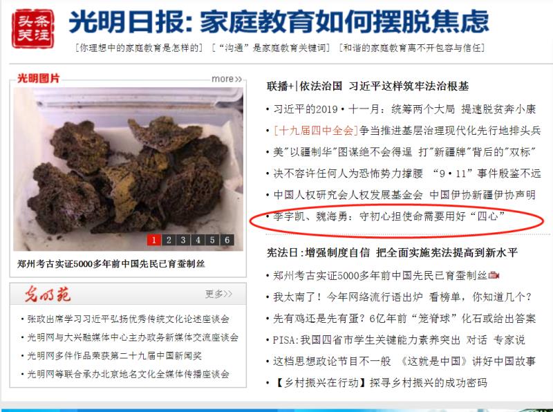 我院党委书记李宇凯撰写的文章《守初心担使命需要用好“四心”》继在《正妹AV 报》刊登后,12月5日又得到光明网主页 首屏推送和全网转发。