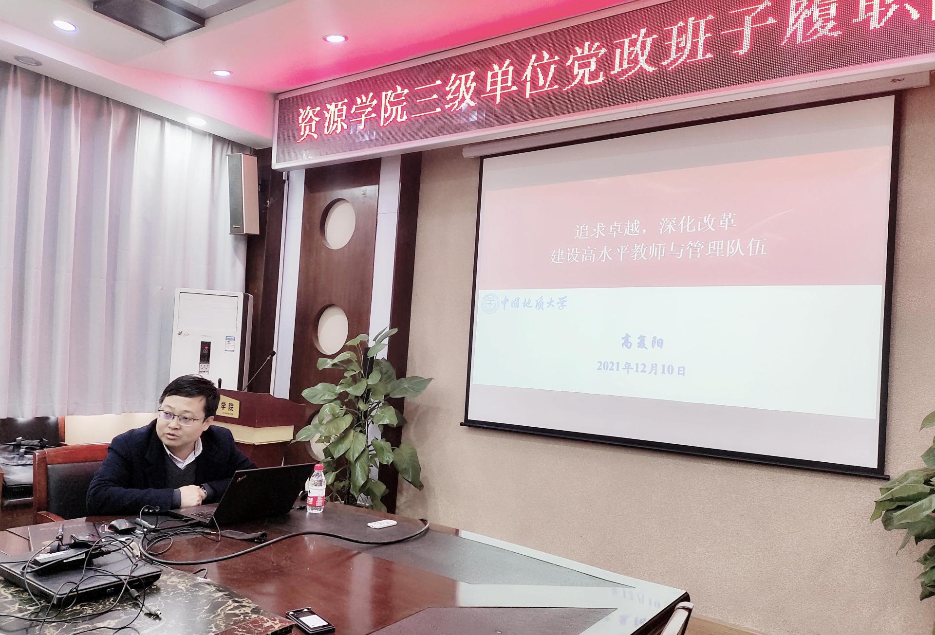 高复阳以“追求卓越,深化改革,建设高水平教师与管理队伍”为题,重点结合学习贯彻习近平总书记重要讲话精神,认真落实深化综合改革部署,紧紧围绕“十四五”改革发展和“双一流”建设目标任务,主要从师资队伍建设形势与任务、教师思想政治与师德师风建设、教师专业能力素质提升、教师业绩考核评价、青年教师队伍建设、管理干部队伍建设等六个方面作了专题培训。他领学了习近平总书记关于高校教师队伍建设的系列重要讲话、师德师风建设相关文件精神,通报了有关高校教师师德违规典型案例,结合学校“思政工作50条”和“立德树人60条”等有关要求,结合学院实际,有针对性地进行了详细解读,要求全体教师认真落实立德树人根本任务,严格按照有关文件要求,敬畏教师职业,规范从教行为,恪守师德底线,坚决做到“四个相统一”,主动争做“四有好老师”,努力当好“四个引路人”。