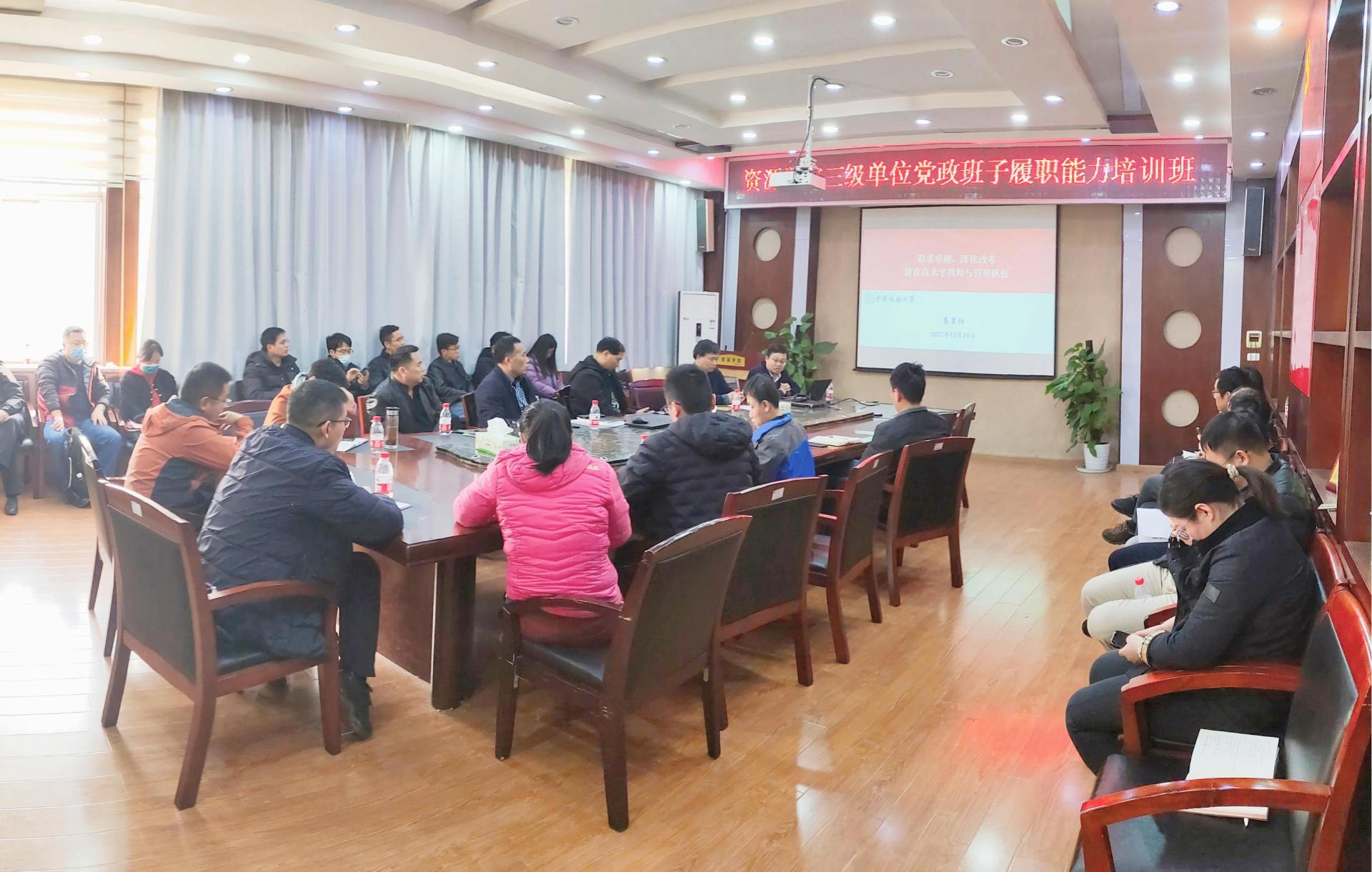 三级单位党政班子履职能力培训班第二期培训在主楼330会议室进行。学院党委书记高复阳、副院长朱红涛分别授课,各三级单位党政班子成员及院直全体人员参加培训。