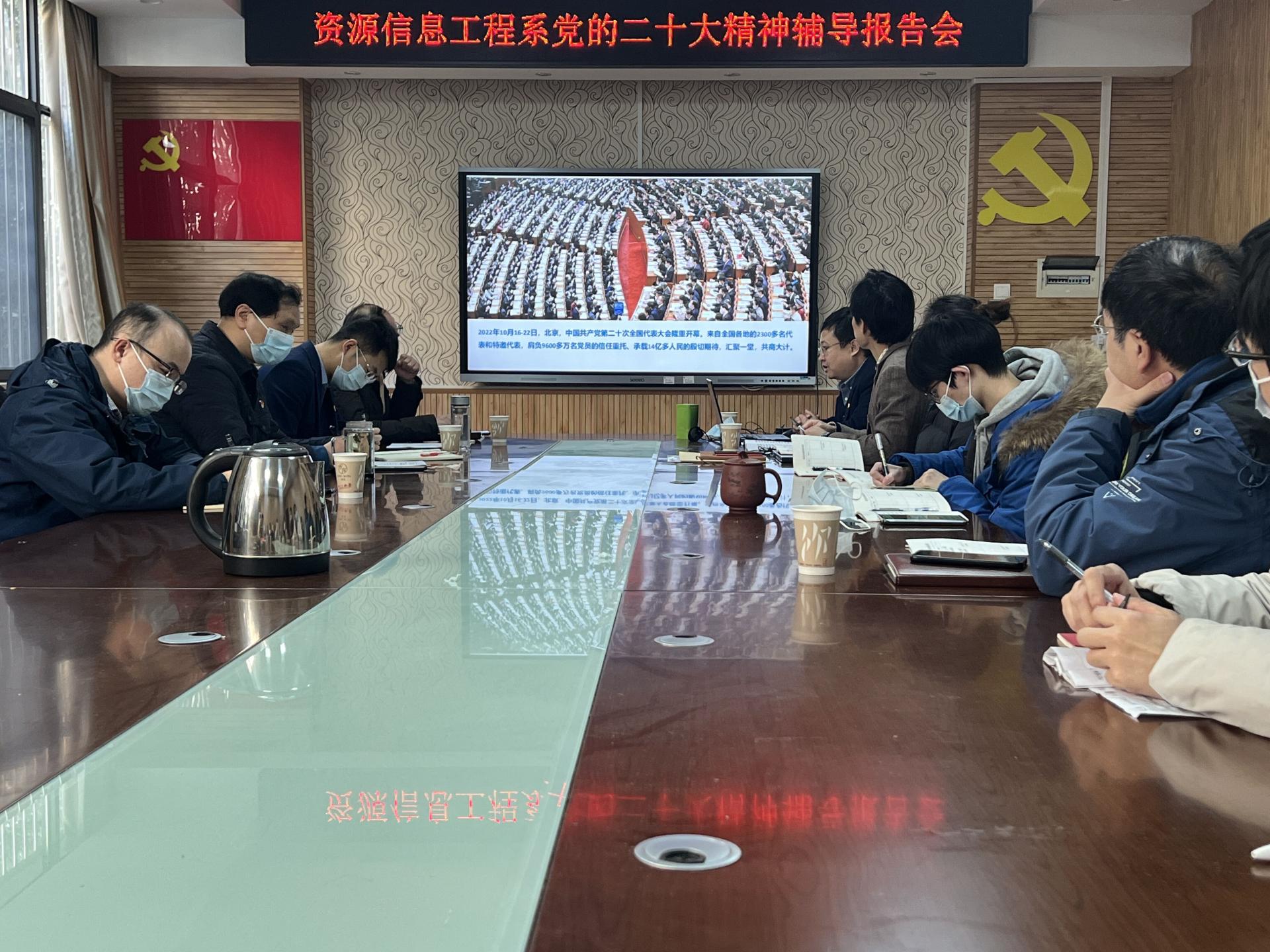 12月9日上午,学院党委书记高复阳给资源信息工程系全体师生党员作党的二十大精神学习专题辅导报告《领会精神 担当使命》,全面解读党的二十大精神,引导党员师生以实际行动深入学习宣传贯彻党的二十大精神,在推进“双一流建设”、落实好立德树人根本任务等方面再创佳绩。