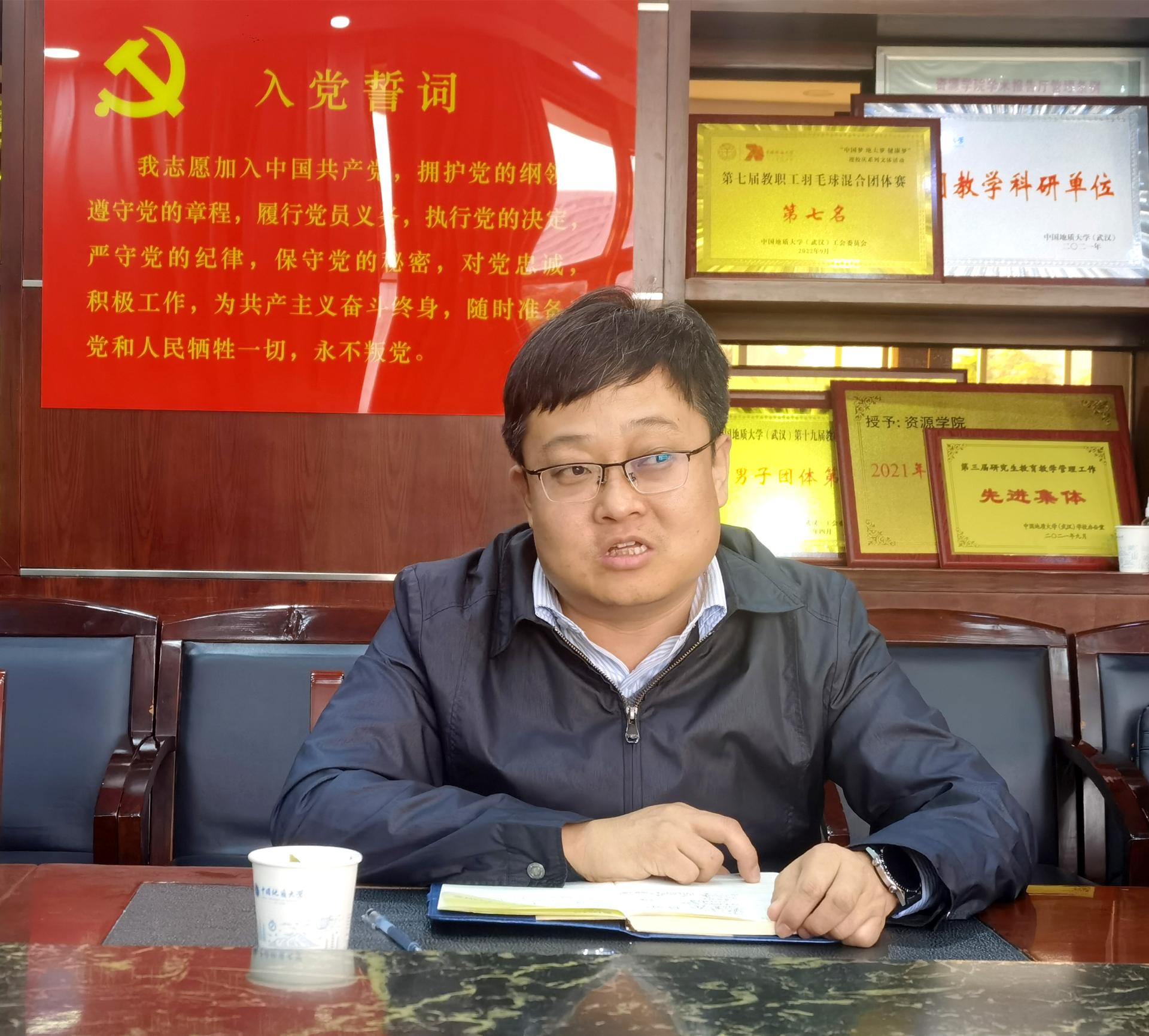 2021级辅导员霍少孟从学年工作思路、上学期工作总结、学年学业情况分析、近期重点工作做汇报。他介绍了年级综合测评、贫困认定和勤工助学、转专业与导师自主选择、红星朋辈榜样论坛、武汉周边地质认识实习、重点关注等情况,细致阐述了大一两个学期学情基本情况、对比发现的问题和产生的原因、后续对策。他从抓住契机多措并举深化专业思想政治教育、科学开展生涯规划指导、持续强化学业帮扶管理和学风培育等方面介绍近期重点工作。