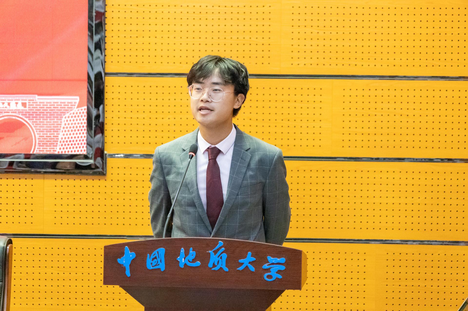 新生代表、021221班孔甘霖同学分享了自己与地大结缘的故事以及入学以来的感受,畅享了未来的大学生活,倡议同学们立足于时代要求,着眼于全球大势,锐意进取,激流勇进,做永不停息,无所畏惧的后浪。