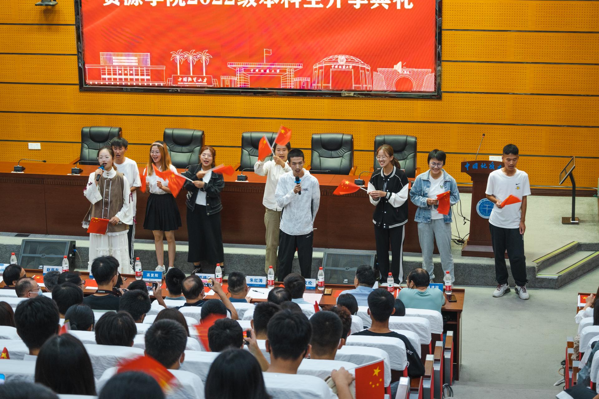 8:30,在雄壮的国歌声中,开学典礼正式开始。全体院领导,各系党支部书记、主任,2022级班主任,教师代表,院直全体老师,2022级助理班主任、“党员责任区”驻班党员,高年级学生代表,全体2022级本科生参加典礼。2022级本科生辅导员刘明辉主持典礼。