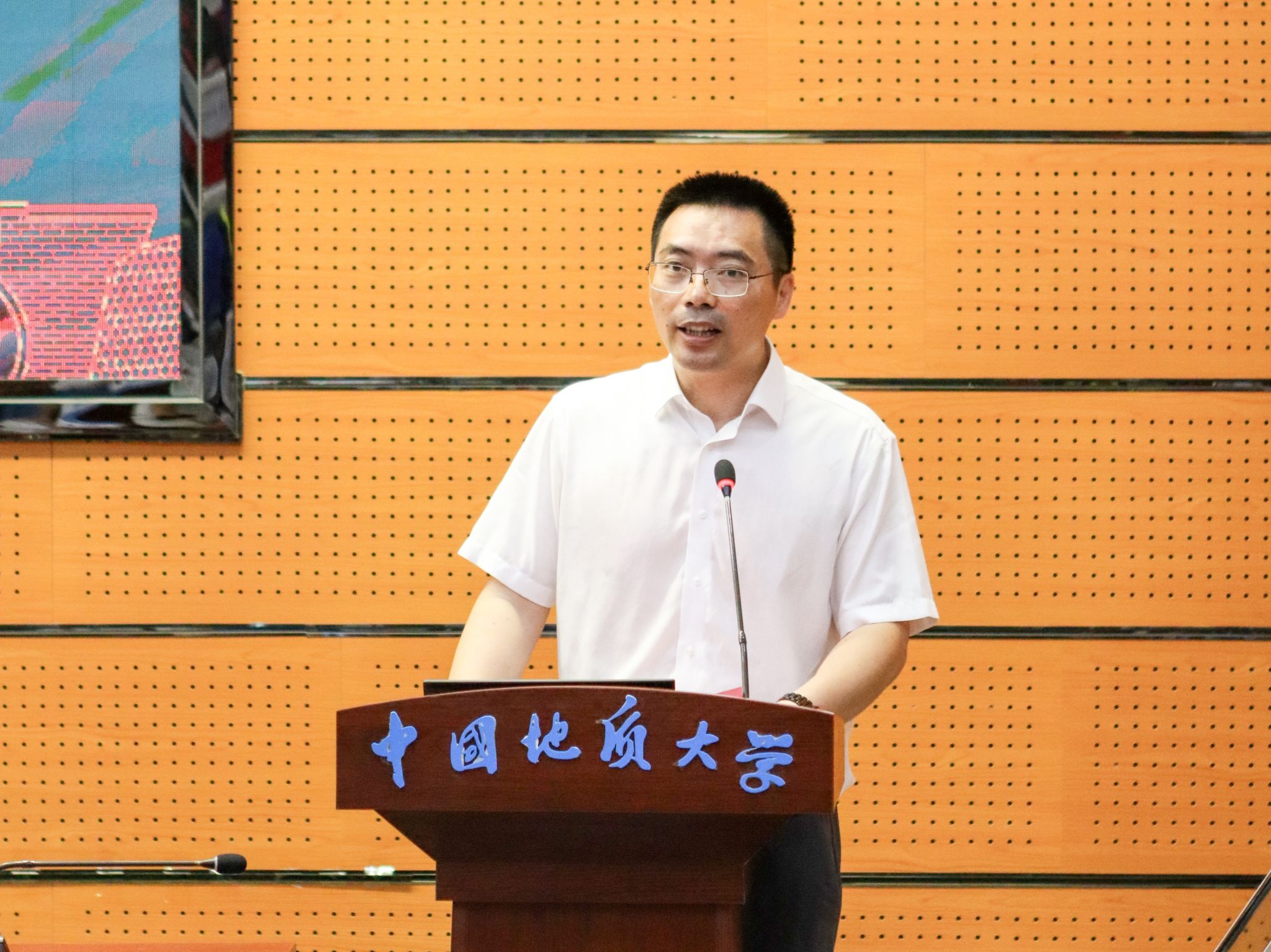 研究生毕业生代表徐赛发言。他结合在地大十年的求学经历分享了自身感悟。毕业后,他即将前往长庆油田,在为保障国家能源资源安全的最前线贡献青春力量,将在地大的所学所得全部熔铸在自己热爱的事业中。他以苏轼的两句词“莫听穿林打叶声,何妨吟啸且徐行”表达对毕业生的祝愿,希望大家走出“象牙塔”、直观地感受复杂多变的社会时,即便只有竹杖芒鞋,也要积极乐观、砥砺前行,搏击风雨、笑傲人生,关关难过关关过,人生漫漫亦灿灿。