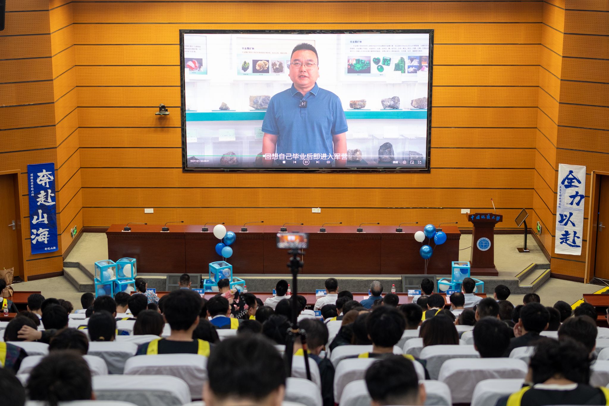 校友代表,1997届校友、“全国自然资源系统先进个人”获得者、中国地质调查局廊坊自然资源综合调查中心副总工程师侯红星通过线上方式为毕业生们送上祝福。他结合自身学习工作经历,叮嘱毕业生关于专业、责任、创新的重要性以及人生的意义。他指出,无论大家未来从事何种职业,都要牢记在母校所学的知识和技能,勤思考、重实践、搞创新,一步一个脚印走好人生阶梯;在未来的工作中,要勇于突破传统思维模式,敢于尝试新事物,积极探索新方法;无论身处何种岗位,都要以高度的责任感和使命感,认真对待每一项工作,踏实做好每一件事,坚持做有意义的事;人生的意义在于不断追求和实现自己的梦想,希望大家在未来的道路上,能够不畏挫折,坚定信念,勇往直前,用汗水和智慧书写自己的人生篇章。