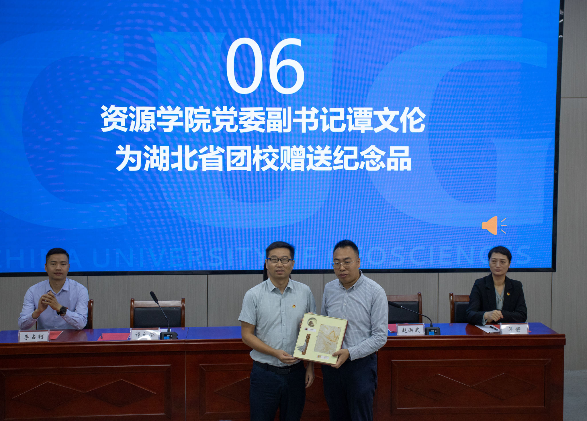 谭文伦代表学院为湖北省团校赠送纪念品。