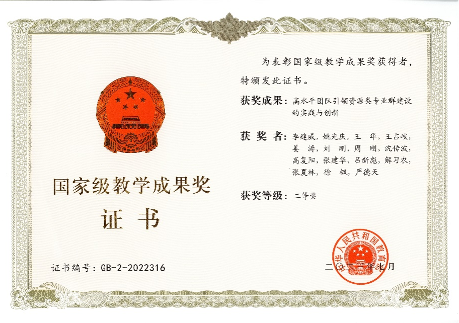 图8 国家级教学成果二等奖获奖证书