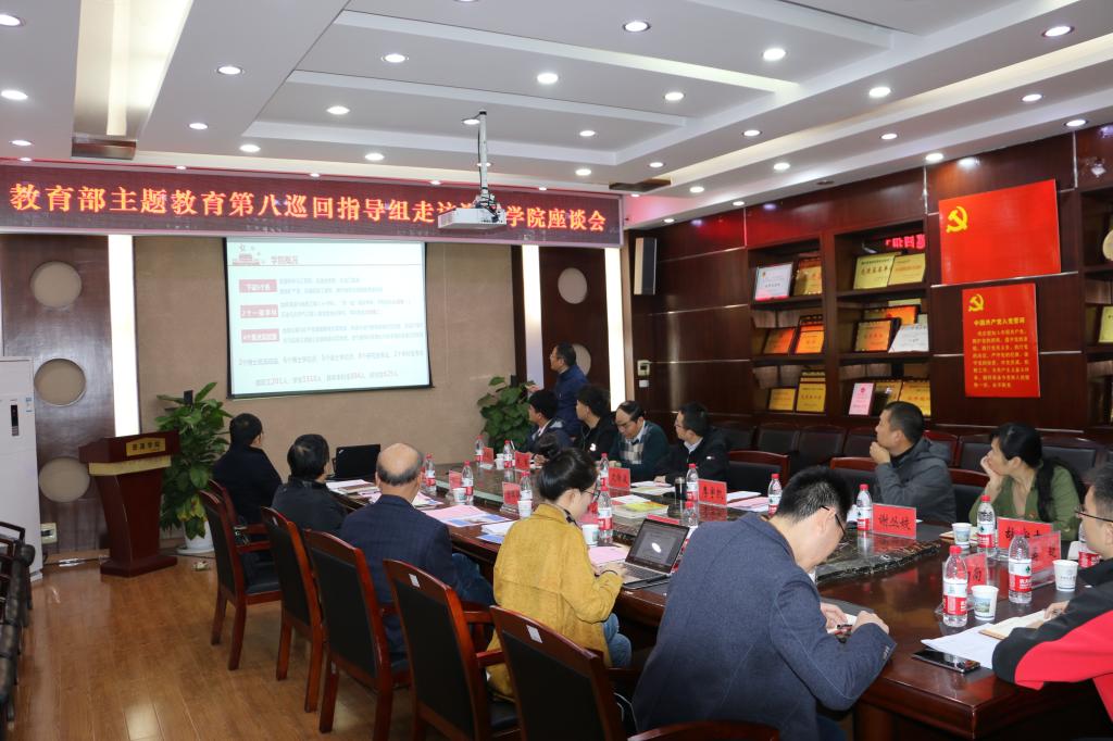 11月21日,教育部主题教育第八巡回指导组组长黄健柏,指导组成员刘尧、储钰琦,校党委副书记唐辉明,组织部副部长梁本哲、冷再心一行来院调研主题教育工作。院党委书记李宇凯、党委副书记张建华、副院长沈传波、各教工党支部书记、学生党员代表参加座谈。