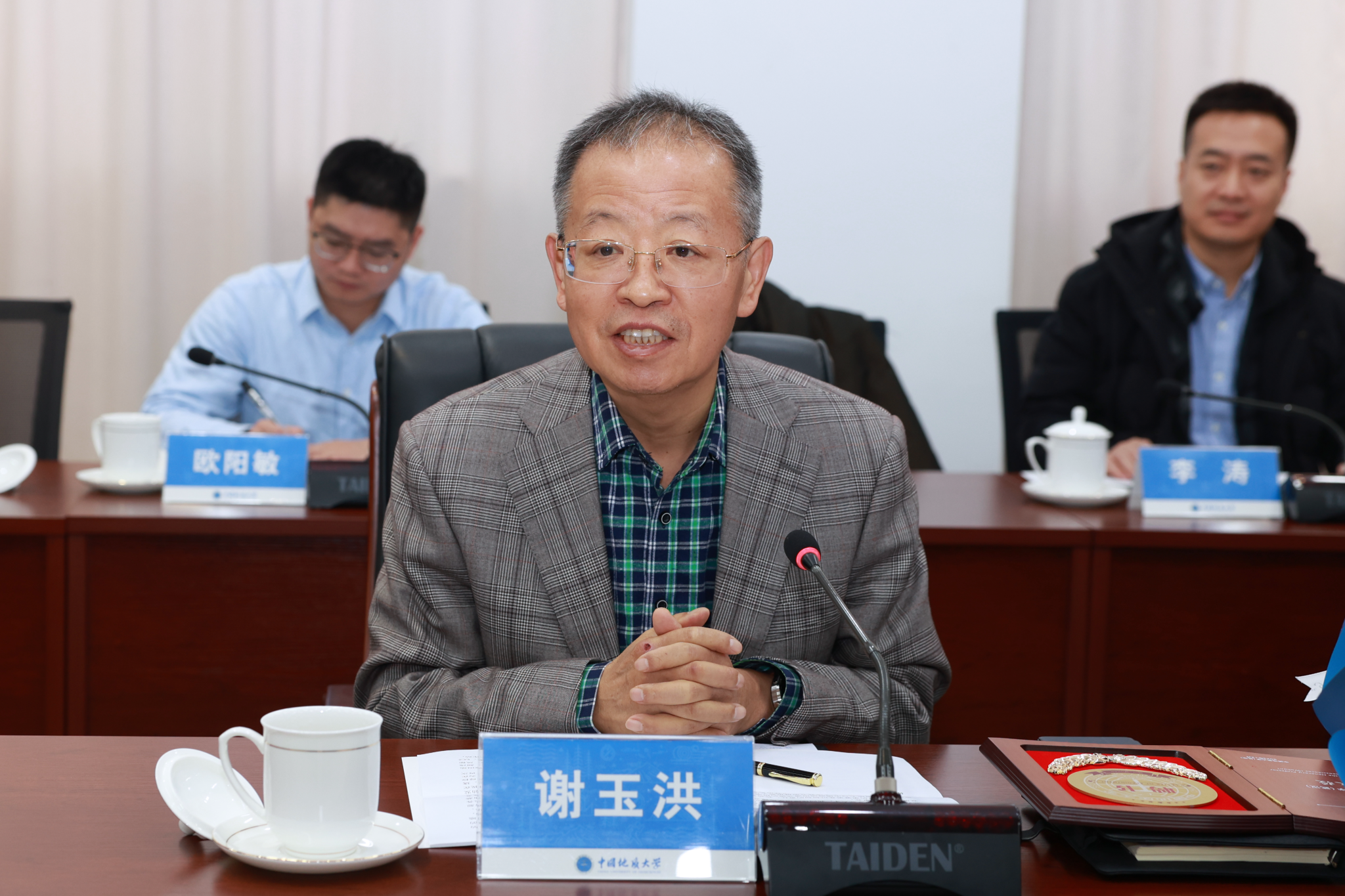 王华首先介绍谢玉洪的学术经历及主要成就。他提到,长期以来,谢玉洪非常关心和支持母校的人才培养、团队建设和科学研究等工作,并与学校形成良好的合作基础。他希望,谢玉洪今后在学科建设、师资引育、拔尖人才培养、科研平台建设、高端成果产出和国际合作交流等方面多给母校建言献策,为学校引荐更多优秀人才。