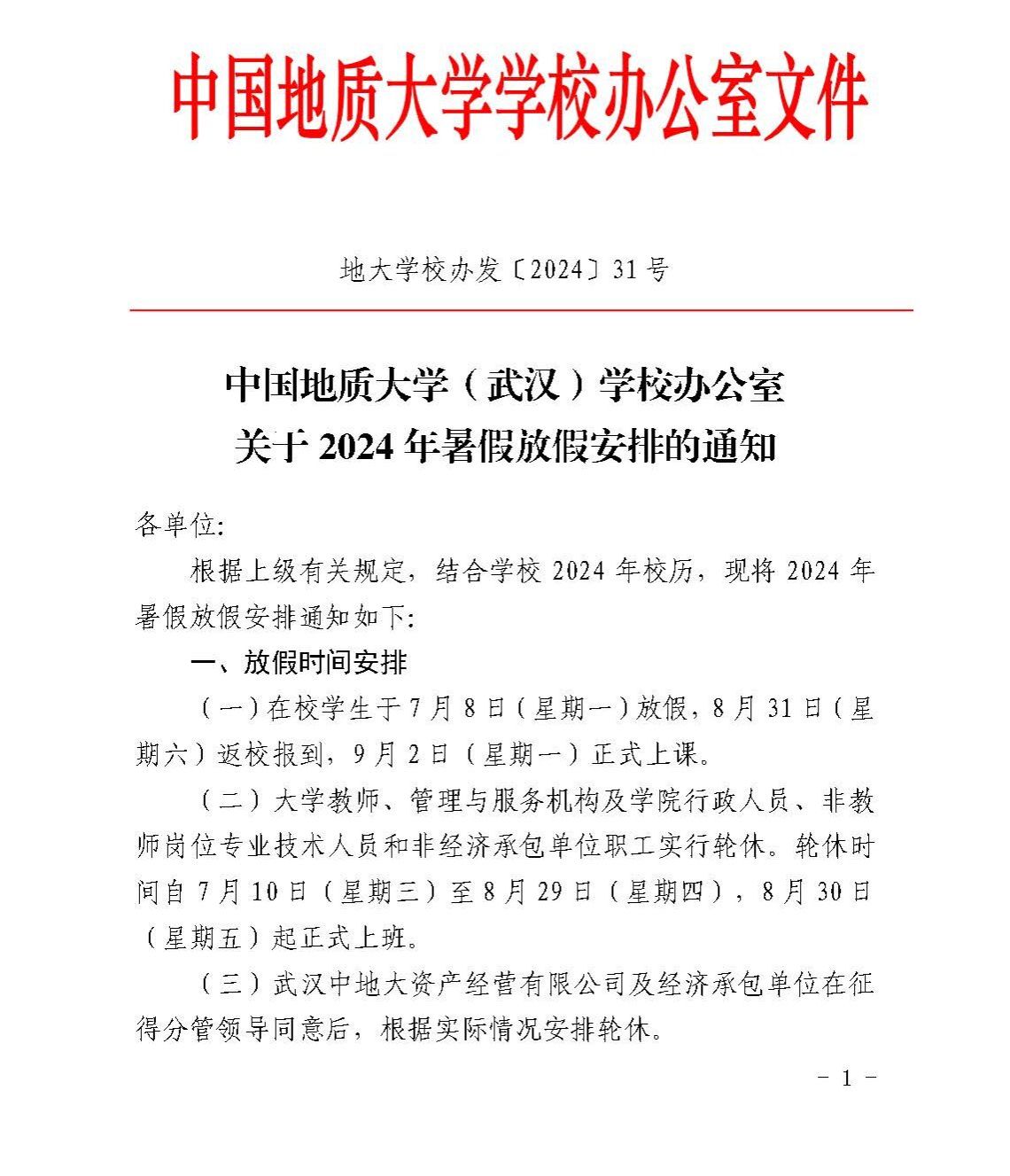 正妹AV (武汉)关于2024年暑假放假安排的通知