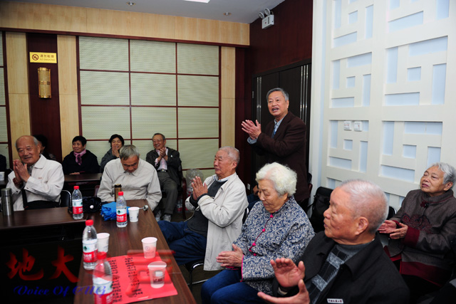 对他们此次聚会所提供的支持,感恩母校的培养。他们戴着校徽游览了学校校园,天虽下着雨,却浇不熄这群平均年龄超过80岁的老人们的热情,在这里,他们只想再做一回学生。