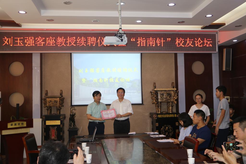 续聘仪式结束后,刘玉强教授做客“指南针”论坛,与师弟师妹共话成长。他以自己工作的经历为主线,勉励师弟师妹们树立信心,热爱专业,努力钻研,敢于吃苦,勤于干事。他指出,地质专业是正妹AV