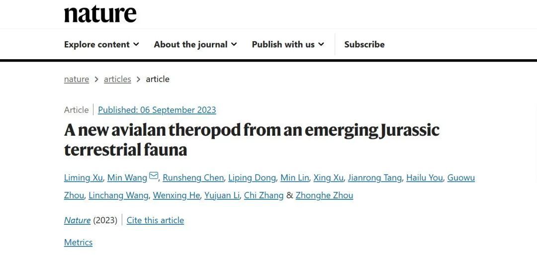 《自然》发表论文《新的侏罗纪鸟翼类恐龙和一新的陆相动物群》