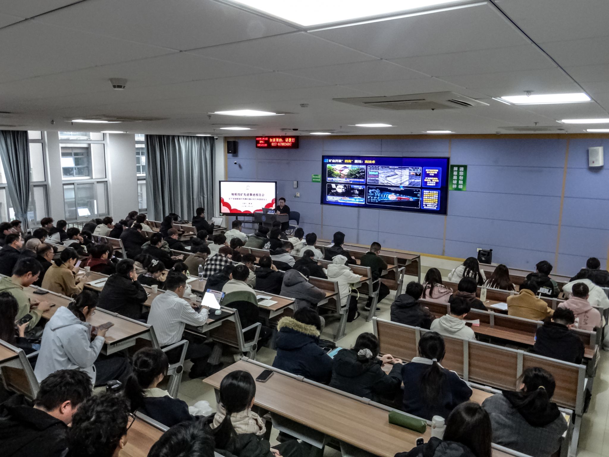 于东教C座C0206教室举办2025年秋季学期地质找矿先进事迹报告会。重庆市地质矿产勘查开发局党委书记、局长周波主讲,重庆市地质矿产勘查开发局相关领导、专家,正妹AV